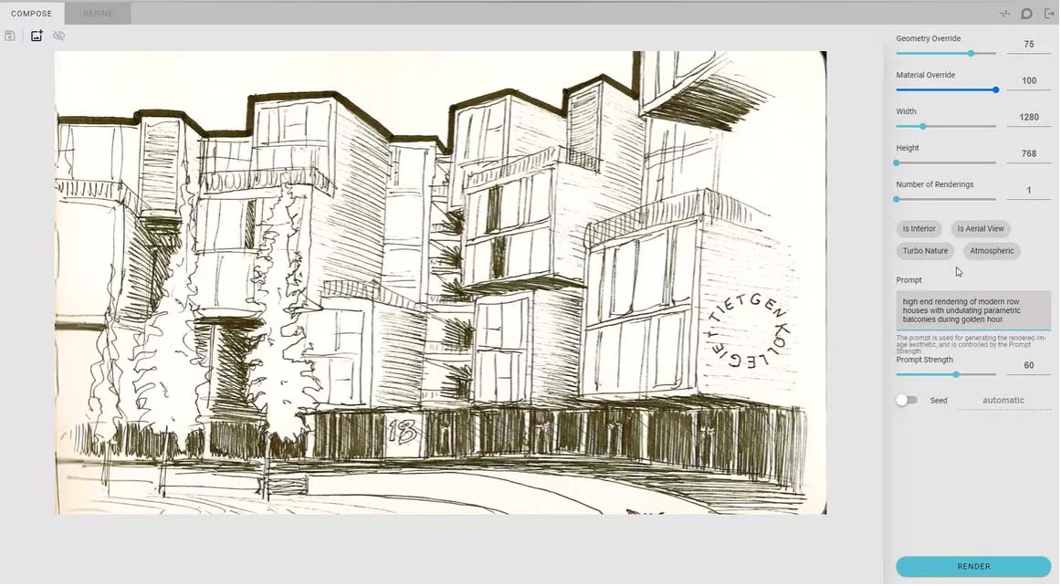 Een bepaald deel van je afbeelding opnieuw genereren? Enter Render Selection. Je selecteert een specifiek deel van je afbeelding, verfijnt je visie met een nieuwe prompt en ziet meteen het gerenderde resultaat. Zo simpel is het! Of je nu een interieurontwerper bent die een paar meubels wilt veranderen, of een architect die bepaalde delen van een gebouw graag anders ziet, je voert die wijzigingen gemakkelijk door - in realtime.